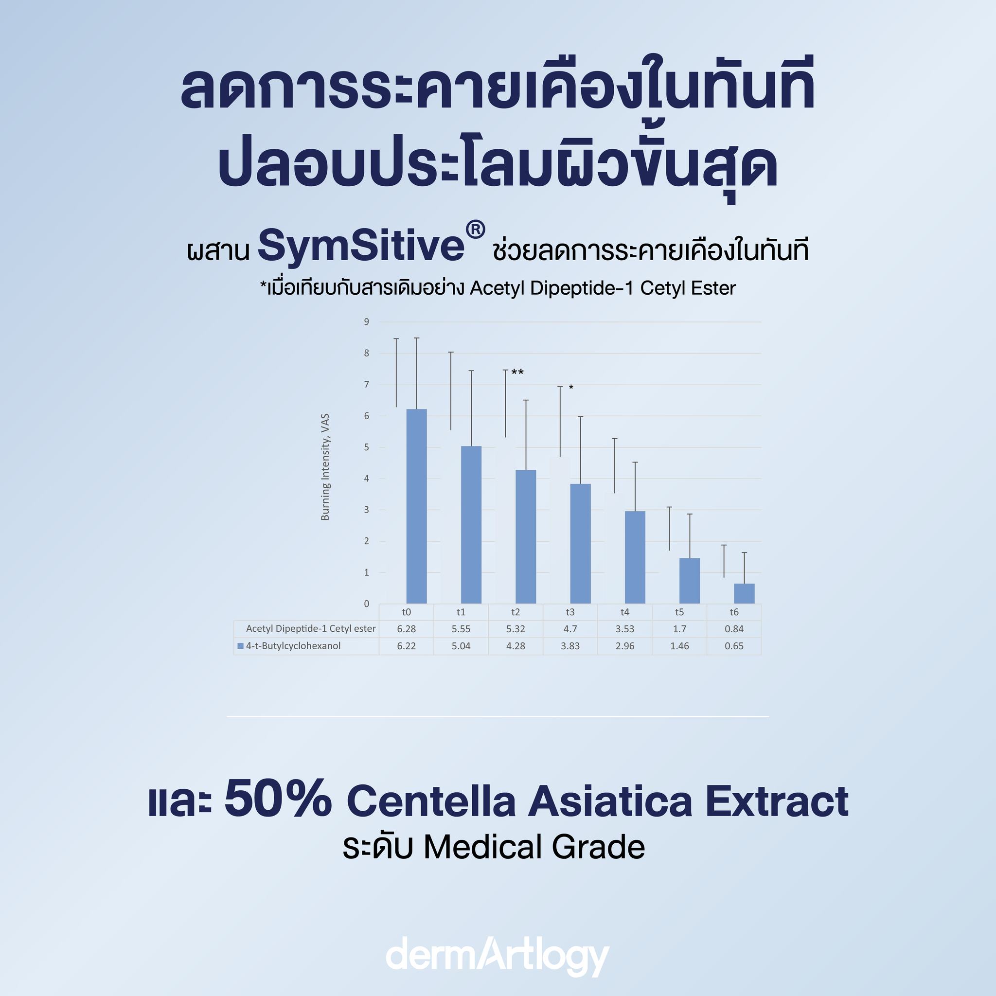 ต่างจากสารสกัดปลอบประโลมทั่วไปที่เน้นลดการอักเสบที่ปลายเหตุ SymSitive® (4-t-Butylcyclohexanol)คือสารนวัตกรรมที่ทำหน้าที่เป็น Sensory Regulator หรือตัวปรับสมดุลการรับความรู้สึก